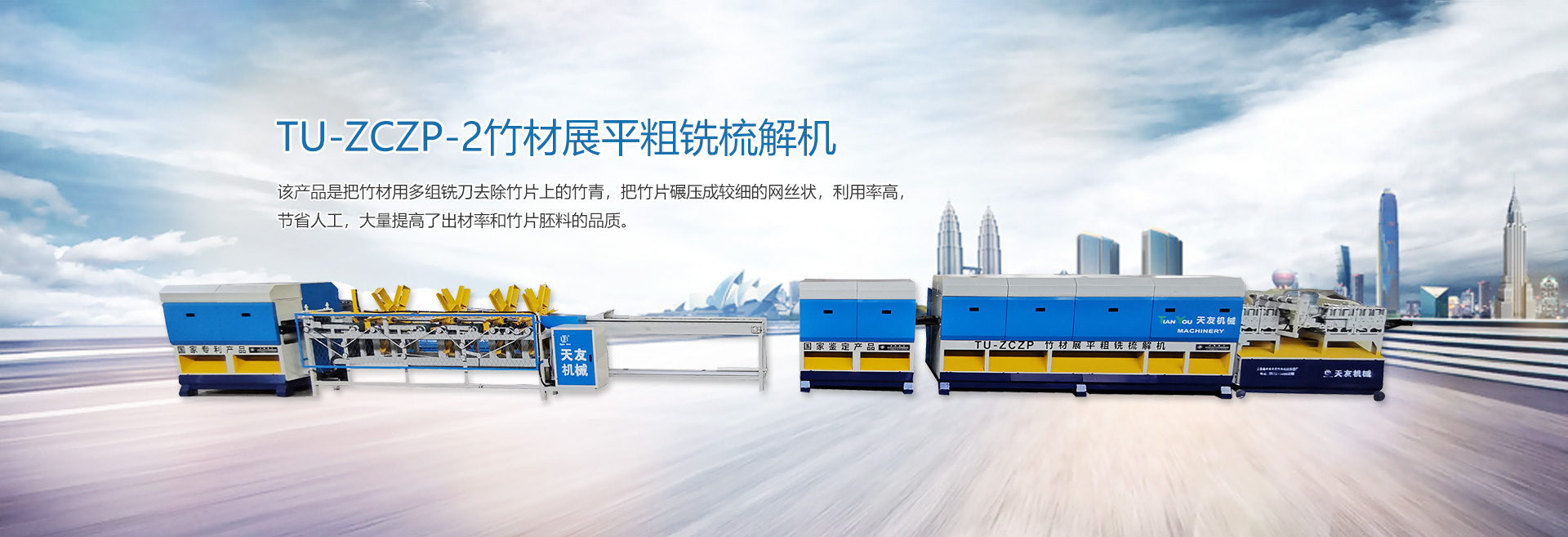 安吉天友機械科技有限公司位于浙江杭嘉湖平原西北部,地理位置優越,交通運輸便捷的“中國竹鄉”——安吉。 本廠生產的“天友”牌竹木兩大系列機械產品,品種齊全,包括(竹木機械、重竹設備、竹筷成套機械、牙簽成套機械、刨篾機、包裝機、竹地板成套設備、竹涼席成套設備、砂光機、破竹機、拉絲機、精刨機、帶節雙生筷、天削筷機械等) ,結構新穎,質量上乘,以完善的售后服務體系深受客戶的好評。